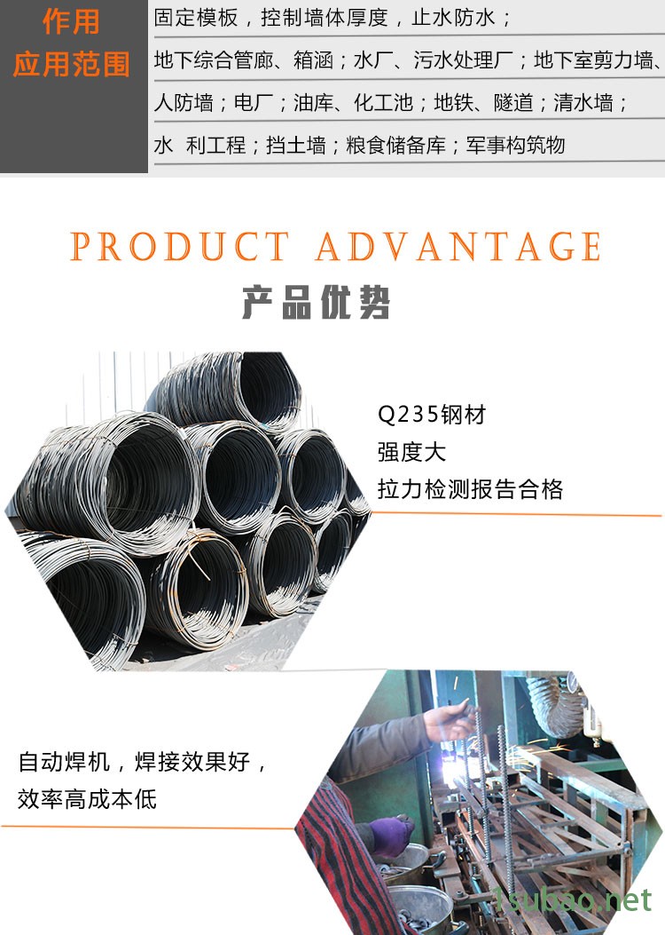 | 标准类型 : | 国标 | 作用 : | 加固模板,防止模板爆模,止水防水 |