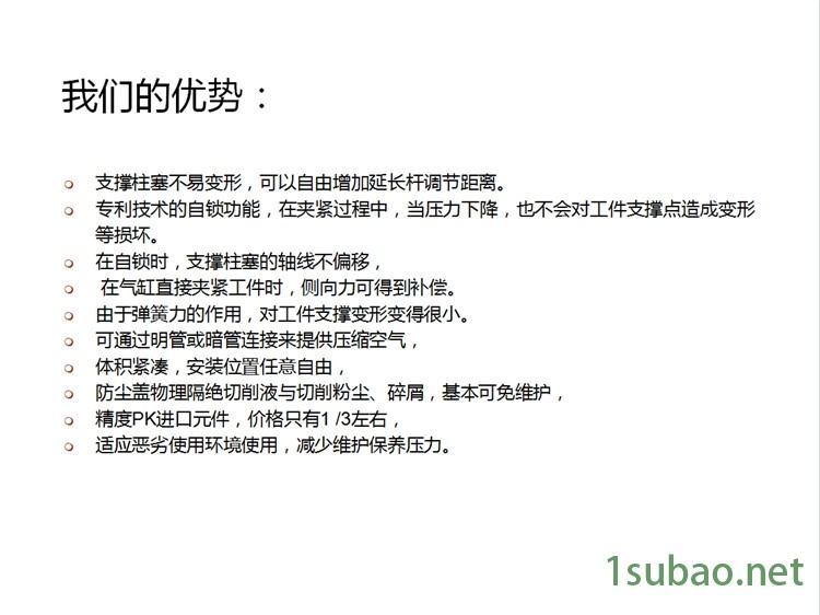 精度:窜动上浮值0.05MM。锁紧力值:27kgf/0.6MPa