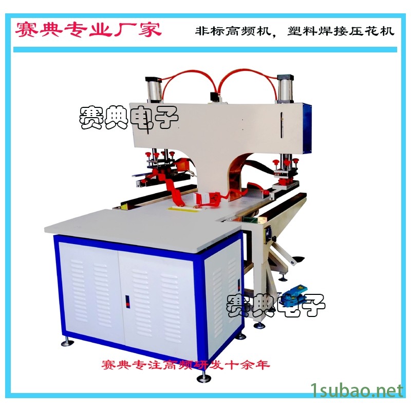 赛典主营产品:PVC发泡板压花机、软膜天花扣边条焊接压边机、服装面料凹凸套色压花一体机、真皮皮革凹凸压花纹设备、皮革海绵布料坐垫压纹机、吸塑泡壳高频热合机、地毯脚垫压字压花热合压边机、PVC夹网布热合机、尼龙布热合机、PP/PE专用热合机、咖啡机净水滤芯炭包加工设备、全自动无纺布口罩滤芯打片机、无纺布花边机、无纺布热合焊接机、布料口罩热合机,冰丝麂皮绒口罩成型机,超声波无纺布制袋机以及配套模具等。等及配套模具制作。