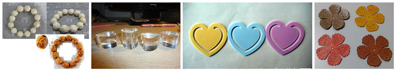 可在竹木、水晶、牛角、纸版、有机玻璃、大理石、布料、皮革、橡胶、塑料等非金属材料上进行激光加工。服装、刺绣、布制玩具、家饰布艺、手袋、手套、玩具行业中皮料、皮革裁切及表面雕花。工艺品、模型、广告、装饰、电器、塑胶行业的亚克力板、中密度装饰板等非金属薄板的精密切割。