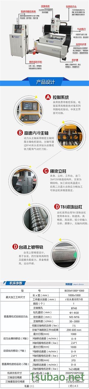 2、龙门数控钻床机床采用床身工作台固定,龙门移动的形式。