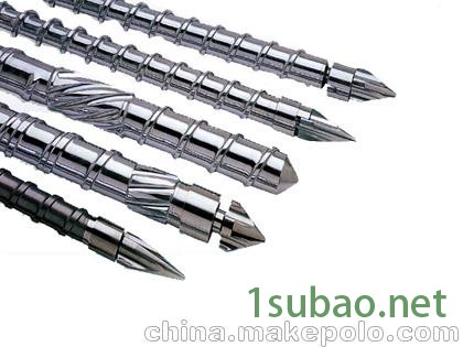 螺杆何用进口高合金钢全硬化处理,有效承受高扭力、高压力冲击,耐磨耗,表面电镀,耐腐蚀,平滑无孔隙以减少表面粘附的降解,细部结构精心处理,藏胶有效防止,低剪切设计,发热小。一般取中小直径,成型PC、BS+PC、PP-R、阻燃ABS等效果好。也可成型一般塑料及PMMA普通制品,但混色效果较差。如塑料中加色粉,需订做加强混色型螺杆 。