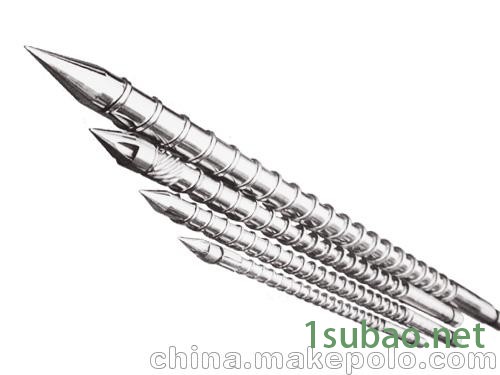 螺杆何用进口高合金钢全硬化处理,有效承受高扭力、高压力冲击,耐磨耗,表面电镀,耐腐蚀,平滑无孔隙以减少表面粘附的降解,细部结构精心处理,藏胶有效防止,低剪切设计,发热小。一般取中小直径,成型PC、BS+PC、PP-R、阻燃ABS等效果好。也可成型一般塑料及PMMA普通制品,但混色效果较差。如塑料中加色粉,需订做加强混色型螺杆 。