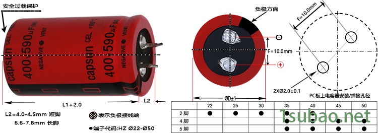 产品特性:开发了新型35VDC,50VDC,小型化,标准品铝电解电容器