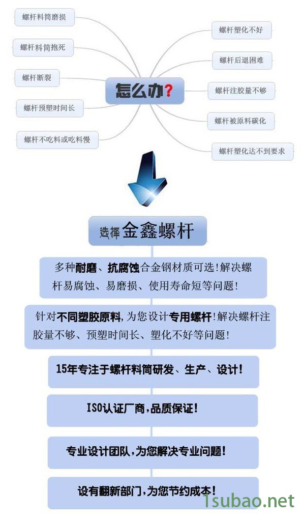 深圳市金鑫螺杆有限公司是生产设计注塑机,挤出机,各种橡胶、塑料机、机筒、螺杆的大型厂家之一。公司员工300余名,其中包括各类技术人员40余名,可根据用户不同特性的工程塑料,设计制造特殊螺杆和料筒。可根据用户产品的几何尺寸及重量选取加工性能的加大或缩小螺杆料筒。并有技术人员提供上门测绘服务。公司拥有加工设备;高精度的生产工艺;高标准的厂房;计算机控制热处理车间;多功能恒温淬火炉;电镀车间和国际高温双金属机筒熔铸车间;公司拥有大型双金属高温浇铸炉,能生产中国目前的双金属机筒和螺杆;在广大员工的不断努力下,先后被省塑料机械行业评为“质量信誉双优企业”,“全国机械制造行业质量放心企业”,“全国标准合格产品”。