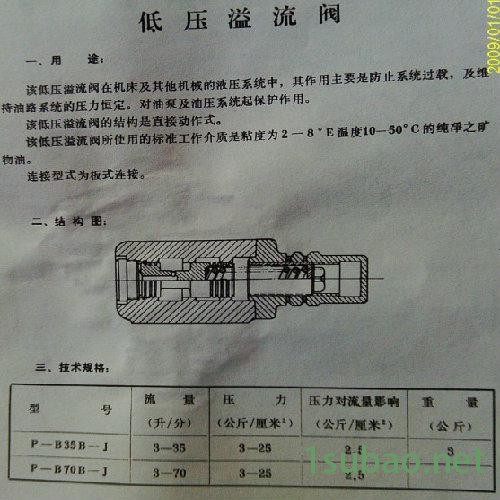 一,GY11A-35x25溢流阀该低压溢流阀在机床及其他机械的液压系统中,其作用主要是防止系统过载,及维持油路系统的压力恒定。对油泵及油压系统起保护作用。