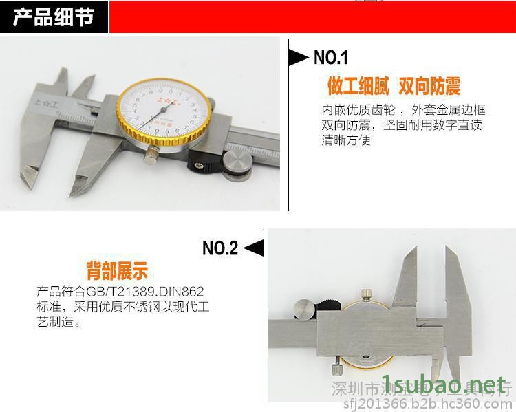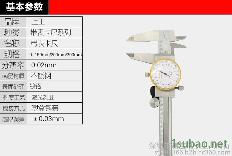 批发零售**shanggong/上工带表卡尺 带表游标卡尺 高精度0.01mm