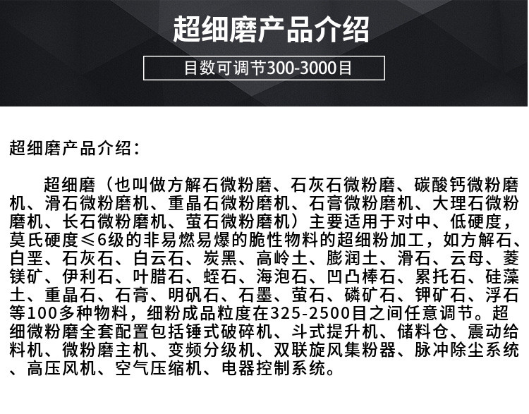 | 适用物料 | 矿石、碳酸钙、石灰石、重晶石、白云石、高岭土等 |