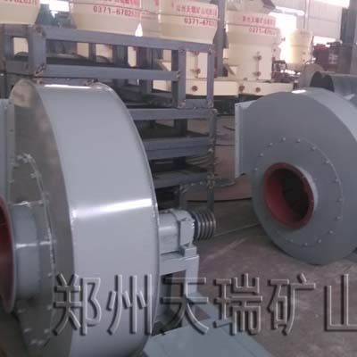 超细磨粉机工作时,将需要粉碎的物料从机罩壳侧面的进料斗加入机内,依靠悬挂在主机梅花架上的磨辊装置,绕着垂直轴线公转,同时本身自转,由于旋转时离心力的作用,磨辊向外摆动,紧压于磨环,使铲刀铲起物料送到磨辊与磨环之间,因磨辊的滚动碾压而达到粉碎物料的目的。风选过程:物料研磨后,风机将风吹入主机壳内,吹起粉末,经置于研磨室上方的分析器进行分选,细度过粗的物料又落入研磨室重磨,细度合乎规格的随风流进入旋风收集器,收集后经出粉口排出,即为成品。风流由大旋风收集器上端的回风管回入风机,风路是循环的,并且在负压状态下流动,循环风路的风量增加部分经风机与主机中间的废气管道排出,进入小旋风收集器,进行净化处理。
