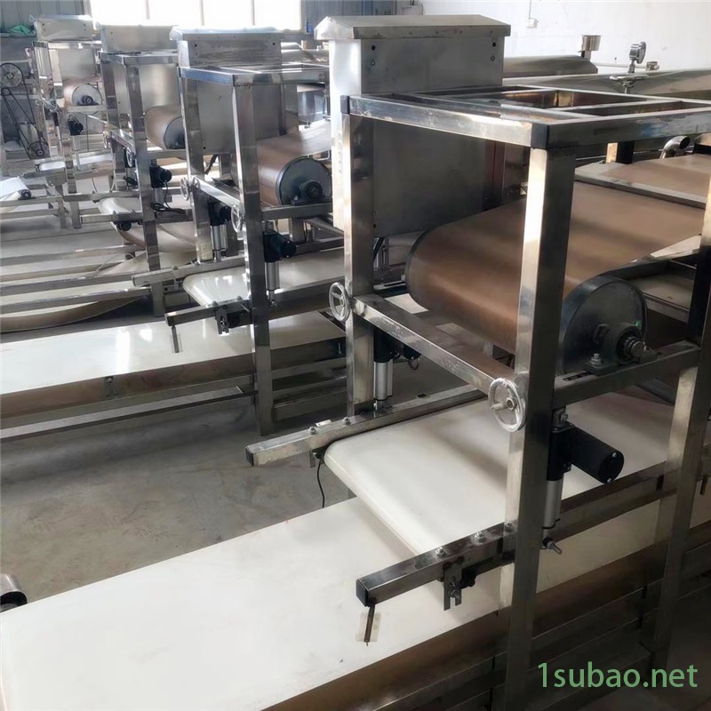 1、上模辊、下托辊与输送带表面配合工作,形成生粉皮浆,然后进入蒸箱蒸煮成型,结构简单、生产效率高、零故障率。