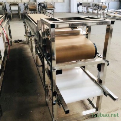本机可以配全自动烘干生产线,烘干线结构紧凑,性能稳定,能耗低,效率高,适用各种淀粉、面粉制作粉皮、五谷面、米皮等,从原料入机至成品(宽窄度可随意调整),全自动,全封闭一条龙生产。其制成品干净卫生,外观平整,晶莹透亮、口感细腻,是取代传统手工制作粉皮的理想机械,不分季节,任何天气均可生产,即使阴雨连绵天也可生产,生产出来的粉皮如果在气温低的季节,几天半月堆在一起也没问题,没有一点影响。不分干、湿、鲜淀粉,照样生产。淀粉做粉皮不用打糊,按比例加水搅拌即可,粉皮耐煮有韧性。节省人力,两人就可生产。