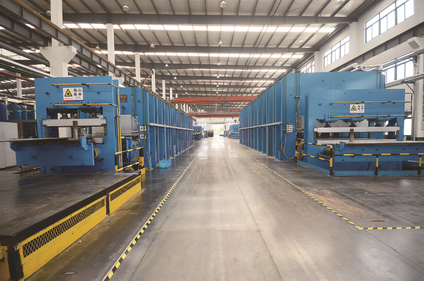 平板硫化机组是国内自动化水平较高,结构紧凑、可硫化大型输送带的机组。适应于硫化普通橡胶输送带、尼龙输送带、钢丝绳输送带和阻燃输送带。主机均采用框式结构,热板及柱塞均选用优质材料,加工精密,不易腐蚀磨损,维修方便,工作压力稳定和调整方便。控制系统采用PLC控制,硫化过程可实现多程序自动控制,如可自动检测和调节热板温度,提高了平板硫化机组控制水平,降低了劳动强度,提高了生产效率。