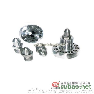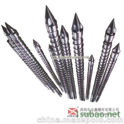 螺杆的设计有两种:螺杆和分胶一体式;螺杆和分胶头分开式。对产品的质量要求高和只打制单一塑(PVC)则使用连体式最合适,反之则可选用分体式,但需注意,螺杆和分胶头分开易造成积料。但选用何种螺杆我司建议必须加上专用温度表作精确的温度控制,由于需散热降温,做PVC产品时熔胶筒要采用强制风冷措施与螺杆配合使用。打制玩具的软PVC除外。