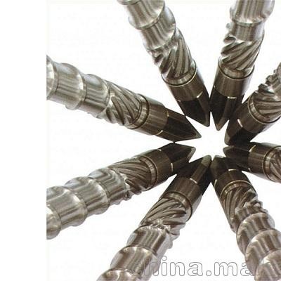 在螺杆喷焊之前需要将螺杆表面残存的塑料附着物清理干净,清理的方法是将螺杆装在喷涂机上旋转,用喷焊枪中性火焰烧烤,待塑化后用铲刀清除。然后用喷砂枪对焊修表面进一步清除氧化层。