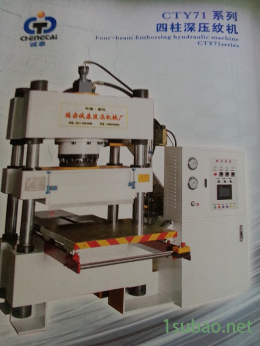 CTY71-200T A液压平压平深压纹机,采用三梁四柱双缸结构,半自动,全自动送料.整机控制系统采用台达PLC微电脑控制,通过液晶屏幕显示,配合高精度(进口)线性导轨,平稳安全可靠.